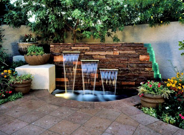 Sebuah rumah yang memiliki desain taman dengan kolam air mancur menghasilkan nuansa yang damai dan adem. Untuk ide pembuatan kolam air mancur tidaklah harus memiliki lahan taman rumah yang luas. Rumah minimalis dengan lahan taman yang terbatas juga bisa dibuat kolam air mancurnya.